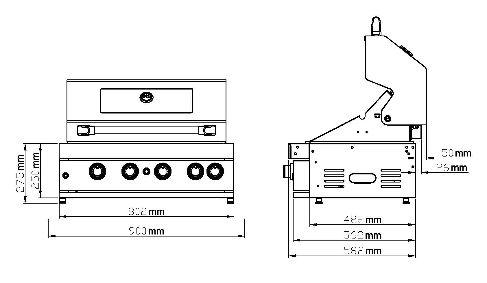 | Cooking Configuration | 50/50 Split Hotplate / Grill |